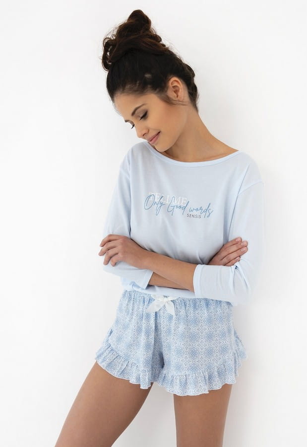 Pyžamo Angela od polské značky Sensis je dokonalým spojením elegance a pohodlí. Vyrobené z kvalitní bavlny v jemném světle modrém odstínu, poskytuje maximální komfort a prodyšnost. Díky příjemnému materiálu je ideální pro každodenní nošení i relaxaci během chladnějších večerů.