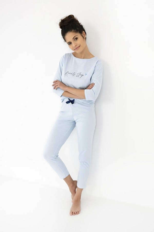 Kalhoty v délce 7/8 skvěle padnou na postavu a zaručují maximální pohodlí. V pase mají saténovou mašličku, která nejen krásně vynikne, ale také podtrhuje ženský charakter pyžama.