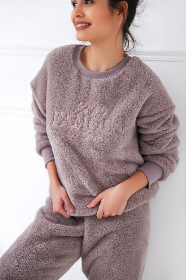 Hlavní předností tohoto pyžama je měkká jemná pletenina, která svou hebkostí obepíná tělo. Halenka a dlouhé kalhoty dokonale chrání před chladem během zimních večerů.