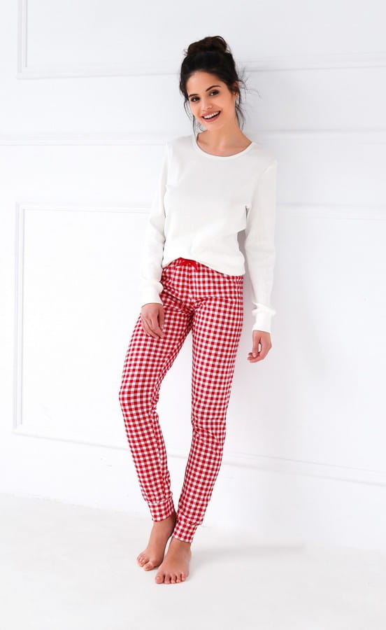 Dámské bavlněné pyžamo s dlouhými kostkovanými kalhotami Perfect - Sensis