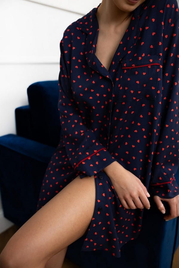 Stylový tmavě modrý odstín je doplněn jemným vzorem červených srdíček, který podtrhuje romantický charakter tohoto modelu. Skvělá volba pro ženy, které chtějí spojit klasiku s jemným ženským půvabem.