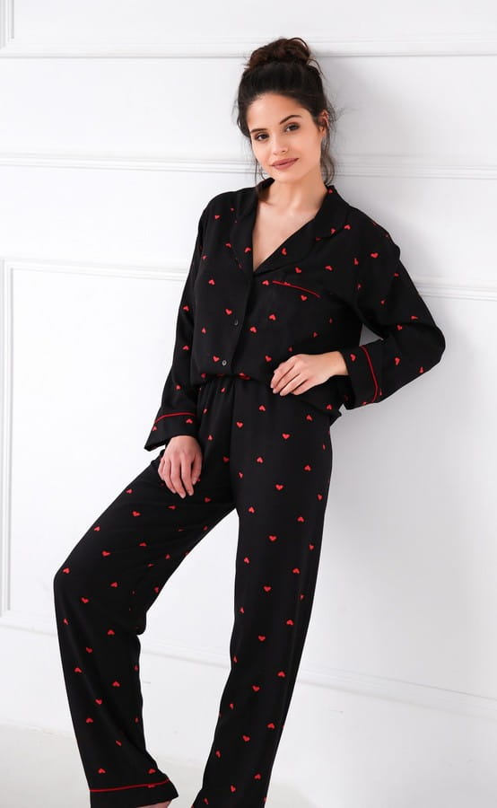 Pyžamo "Rolling in Love" je celé vyrobeno z vysoce kvalitní viskózy a je nejen pohodlné, ale také se snadno udržuje.